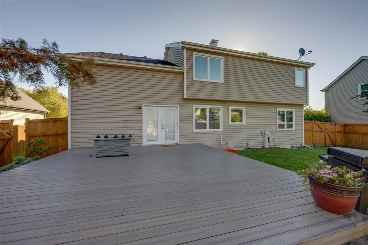 4 bed / 2.5 bath, 2,246 SF two-story in Timber Oaks subdivision, North Aurora. First-floor laundry. Primary suite with walk-in closet, renovated bath, brand new carpet. Three additional bedrooms plus office on second level — office could be a small 5th bedroom. Whole-house fan. Finished basement with gas fireplace (23x17). Deck resurfaced 2024. Heated above-ground pool. Fully fenced yard. New rear slider. 2-car attached garage with extra storage.